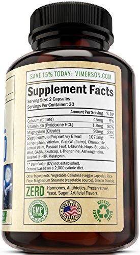 ★ GET RESTFUL SLEEP NOW! Don't compromise your health by using cheap products of questionable quality. Choose the most efficient and pure supplement with maximum results, Vimerson Health Natural Sleep Aid Formula. This and all our products are MADE IN THE U.S.A. in an FDA-Registered facility. This product is GMP-certified to assure the highest quality and purity.