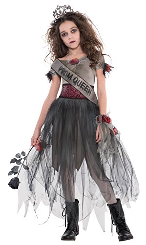 -. Brand : Amscan -. Color : Multi -. Department : girls -. Feature : She's just dying to be your date for prom! / Our Prom Corpse Costume for girls features a gray gown with red rose appliques at the neckline and sleeves / This package includes: (5 Pieces) A dress, tiara, wrist corsage, sash and a belt / A corsage of red roses and matching gray tulle goes on the wrist, and a tiara and sash crown you the prom queen from hell! / Great for Halloween or any costume party -. ProductGroup : Apparel -. ProductTypeName : CHILDRENS_COSTUME -. Title : Children's Prom Corpse Costume