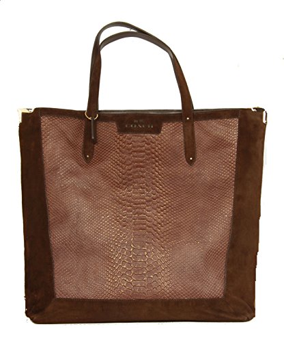 -. Title : Coach Suede Leather With Exotic Embossed Leather Tote Bronze 32786