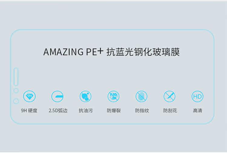 Amazing PE+ 抗蓝光防爆裂钢化玻璃保护膜(0.3mm弧边前膜)