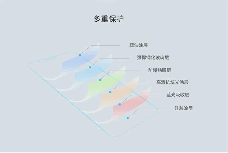 抗蓝光技术,加入特殊蓝光吸收层,有效过滤蓝光(温馨提示:抗蓝光膜在阳光下膜会比较蓝,并且从侧面看也会看到透蓝,室内无影响,光线柔和)