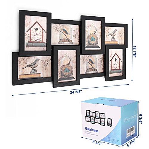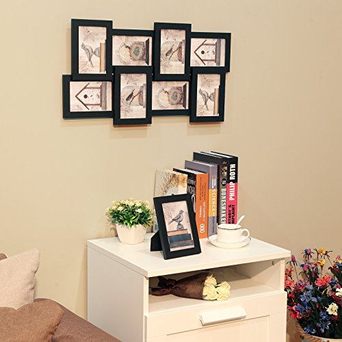 SONGMICS Picture Frames Collage 4'' x 6'' Puzzle Wall Mounting Photo Frame 8 Openings 1 Table Stand Black URPF08B