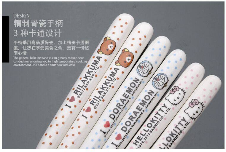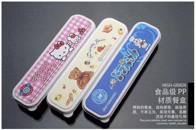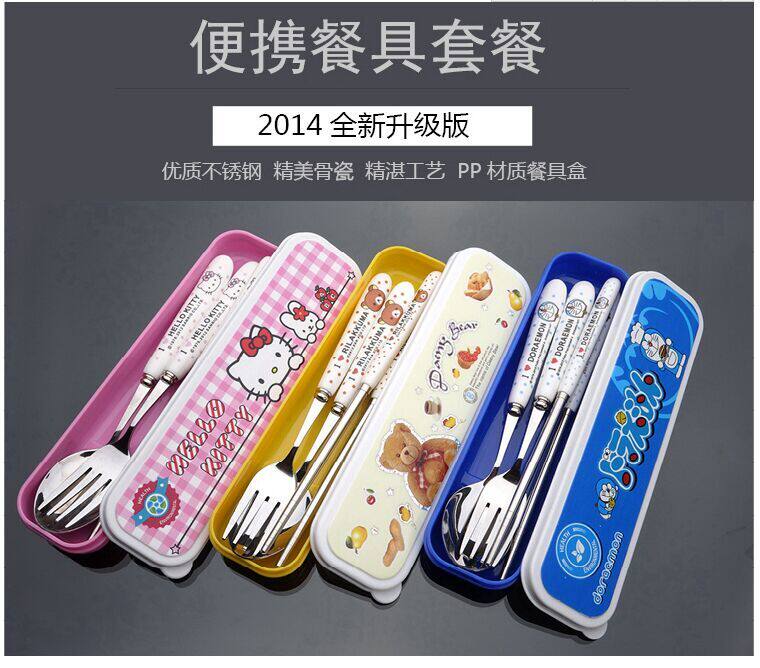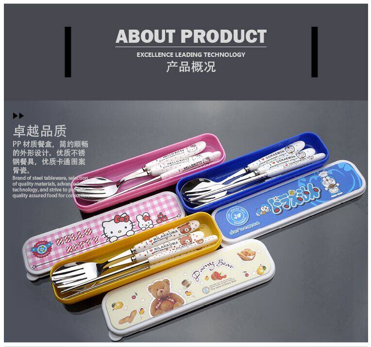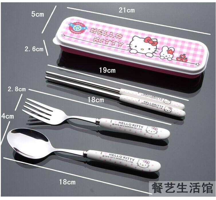 hello kitty学生便携式盒子套装陶瓷餐具 不锈钢勺子筷子叉三件套