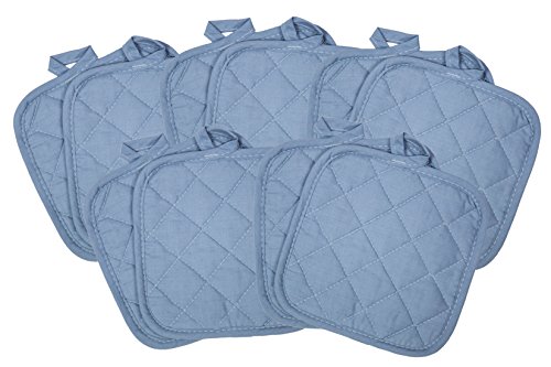Everyday Kitchen Quilted Poly-Cotton Solid Color Potholders 7 x 7 Set of 10 (Blue)
