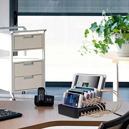 INNOVATIVE DESIGN: the World's 1st 8-port charging station that baffles and base can be separated. You can decide which baffle be left then you have enough space to fiddle with the posture of your devices, lying flat or sideways to charge.