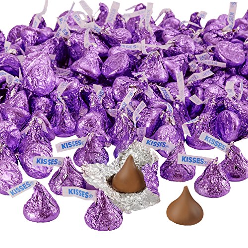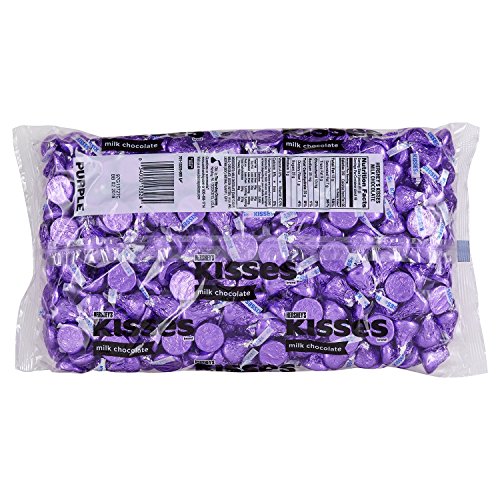 Contains one (1) 66.7oz, 400-piece bag of purple HERSHEY'S KISSES Milk Chocolate Bulk Candy