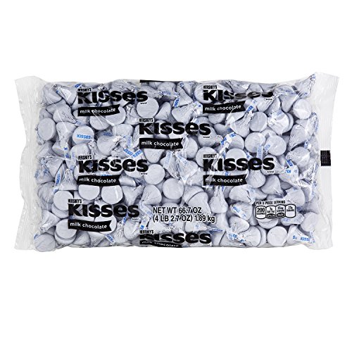 Includes 1 bag of KISSES Milk Chocolate (66.7-ounce bag, approx. 400 pieces. Product is filled by weight. Piece counts are approximate and are provided for your convenience.)