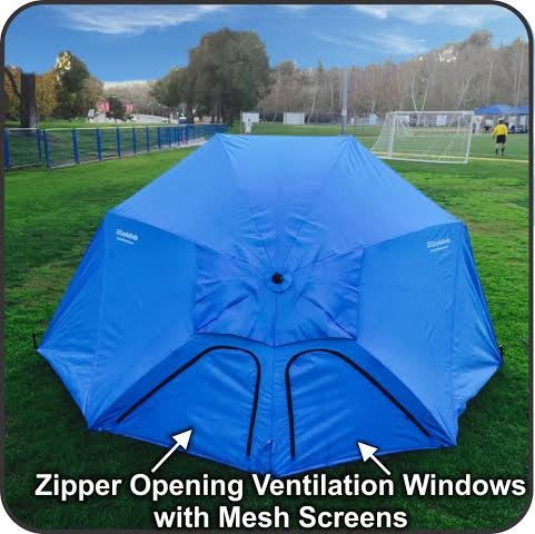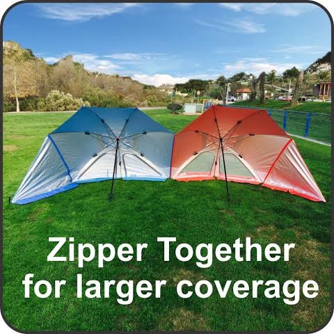 - Feature : Patent pending umbrella - has 7 panels so 2 panels rest on the ground giving greater stability, adjustable pole allows for different angles / Left and right flaps - only attached to 1 panel so they can be easily removed, side panels are not permanently attached to the umbrella / Window vents - the 2 rear windows unzip and have mesh to block sand or other particles flying through the air / Beach umbrella/upright position - when used at the beach the sand pockets on 2 panels become pockets for sunglasses, mobile phones, sunscreen keys etc