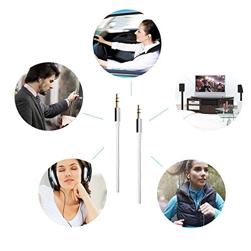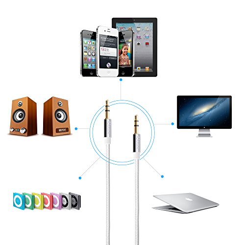 Title : Cone® 6.6Ft Nylon Premium Audio Cable ,3.5mm Aux Cord , Auxiliary Cable for Car / home Stereo ,Beats Headphone,iphone,Computer,Speaker,MP3 Players ( Silver )
