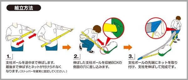 | サイズ | (収納時)約710×300×120mm、(ネット組立時)2950×300×1550mm 個装サイズ:71×30×12cm |
