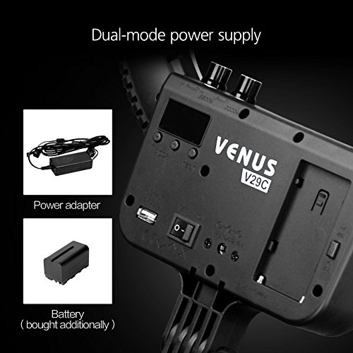 Technical Specs? Light Source: 288pcs LED Total Power: 28.8W(equivalent to 300W on a tungsten light) Input Voltage: 110-240V CRI (Color Rendering Index):95 Illumination: 5600K 2247lm 3200K 2022lm Color Temperature: 3200K-5600K Dimming range: 0%-100% NOTE : The package will not include battery . The light can be matched with Sony Li-ion battery (such as NP-F750 or larger capacity batteries,but the NP-F550 battery is not suitable as it is low capacity. 0