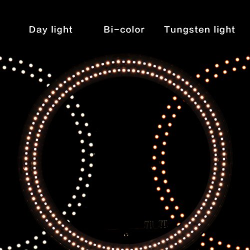 ?Dimmable bi-color function Easier to operate than color filters, Nanguang LED ring light could be dimmable from 3200K(warm light) to 5600K(cool light) to get tungsten and daylight environments for your photos and videos.?