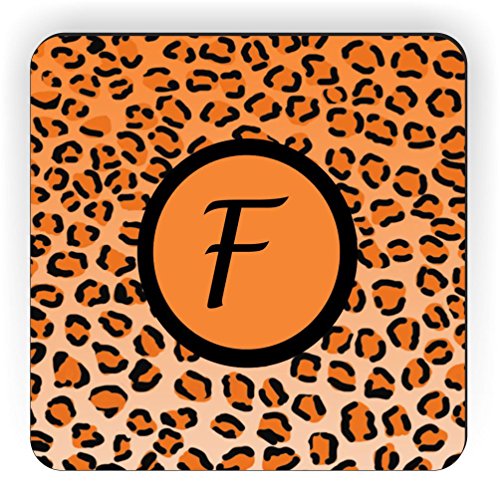 Rikki Knight Letter "F" Initial Orange Leopard Print Monogrammed Design Square Fridge Magnet