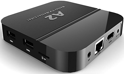 Studio : KVSA2 Publisher : KVSA2 Binding : Personal Computers Product Description New on the faster A2 TV box (2rd generation) with the ability of watching your smartphone videos on your TV. Chinese TV stations, Movies in Chinese and movies. There are over 100's A2 Android 5.1 or Later Multi languages supported APP Market Support Wifi Full HD 1080P H.265 vedio format 3D Game. Product Description Processor ARM Cortex CPU Quad-Core, 1.5GHz freequency Quad-core ARM Mali-450 GPU, 600MHz for 3D Graphics processing 2.5D graphics processor Full 1080P HD video decoding, support H.265 vedio format Power Control Processor MemoryFlash 1GB(32bit) DDR3 Memory 8GB Nand Flash internal Network WiFi/IEEE802.11 Cable RJ45 10/100Mbps Fast Ethernet 3G USB Dongle for WCDMA/CDMA2000 supported Standard Applications Video Movie Player(*.mkv, *.wmv, *.mpg, *mpeg,*.dat, *.avi, *.mov, *.iso, *.mp4, *.rm etc.) Music Player(MP3, AAC, WMA, RM, LFAC, Ogg etc.) Picture viewer(JPG, JPEG, BMP, GIF, PNG etc.) Web Browser Weather, Calendar etc Other HDMI 1.4a Optional for AV output (Ear Jacket) IR and power indicator(Ear Jacket) 2 Host USB Ports Micro USB DC Input Operation System OS Android 4.4 or Later Multi languages supported User Input Method include IR RCU, USB KeyboardMouse, 2.4G Wireless KeyboardMouseRCU Pre-Load Applications HTML5 supported Online VOD application Customized applications Customized application market Online video search 3D Game LAN Multi-media Sharing Play DLNA Airplay SKYPE Samba client XBMC Miracast QQ Voice Call Package List 1× A2 TV box 1×Charger Adapter 1×Remote Controller 1×USB Cable 1×HDMI Cable 1×User Manual 0