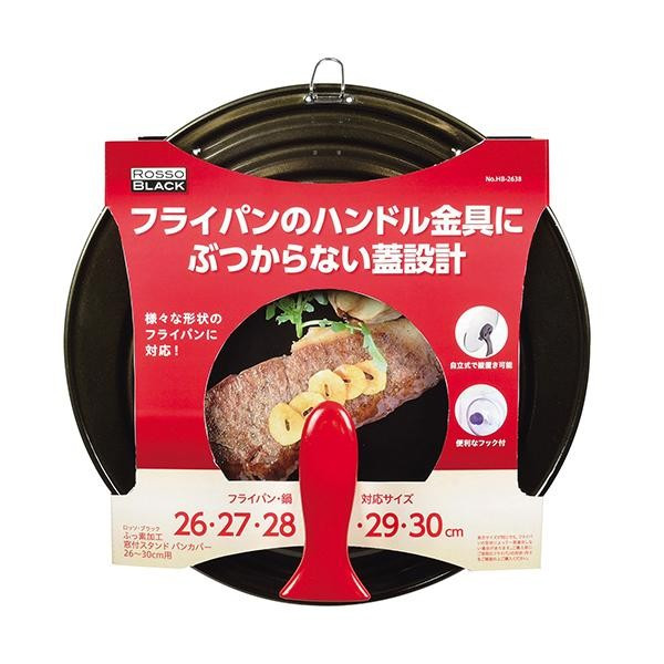 フライパンのハンドル金具にぶつからない設計になっていますので、蓋をした時にズレにくい!大きな窓付きで中の様子もしっかり見えます。 |