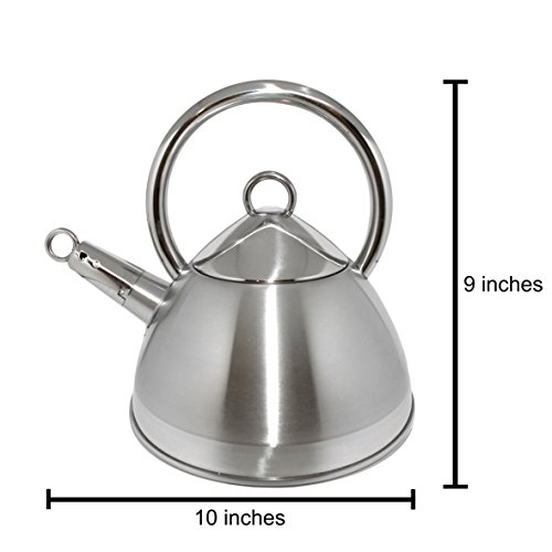 Product Description Features This attractive kettle is enough robust to resist the rigours of the every day. Made robust stainless steel, with finished two tone, equipped with a base with three folds. A whistle is made hear when your water joined the point of boiling. Stainless steel 18/10 Finished 2 tone Base Induction with 3 folds Capacity of 2.5 litres/85 OZ. Washable with the dishwasher 0