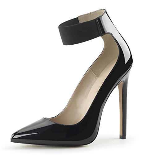 Womens Black Pointed Toe Heels Ankle Strap Pumps Stiletto Shoes 5 Inch Heels