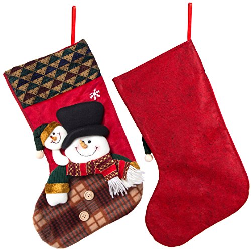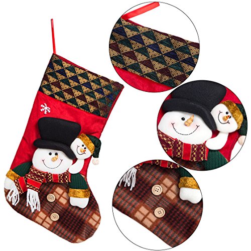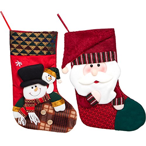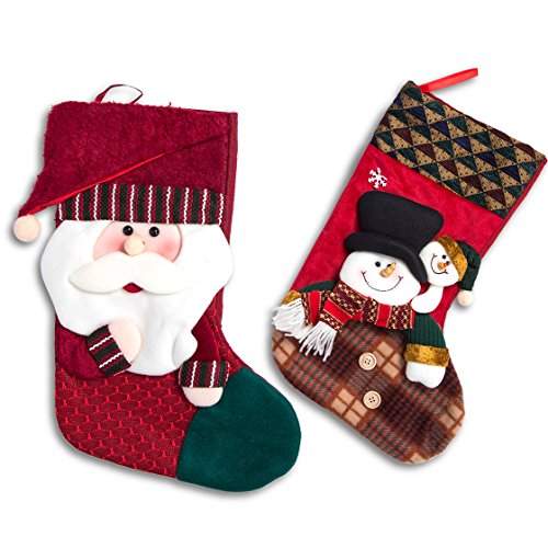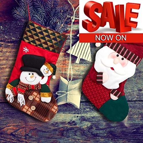 Christmas Stockings Socks Large Xmas Stockings Christmas Gift Bag Hanging Decor Christmas Boots Christmas Party Decoration Santa&Snowman Pattern (2 Pack)