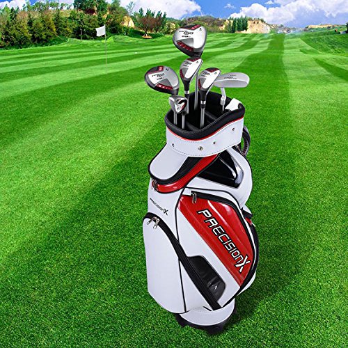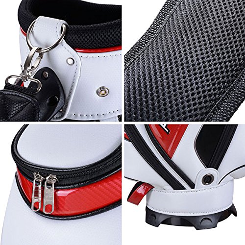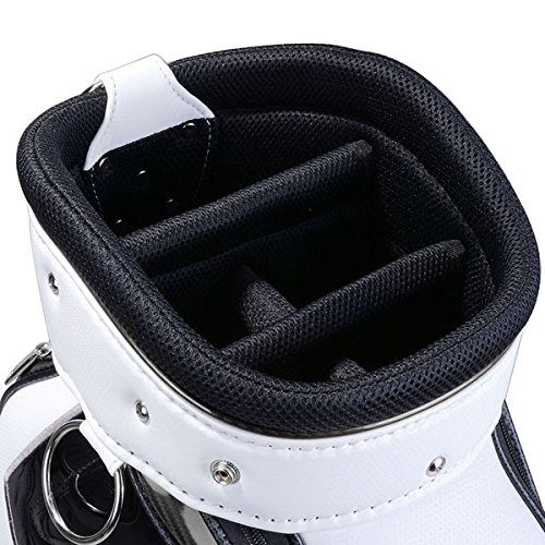 Features: Two (2) sliding shoulder pads with adjustable straps Bag Material: Waterproof durable polyurethane High hardness plastic base 5-way divider with comfortable plastic handle Nine (9) pockets Rain hood included Specifications: Product Size: 17.7"(L) x 10.23"(W) x 51.2"(H) Weight: Approximately 8.25 lbs. Package Contents: 1x Golf stand/carry bag 1x Bag Cap 0