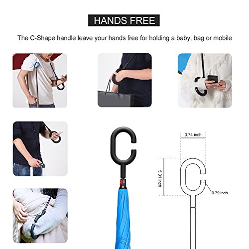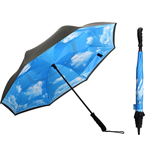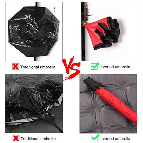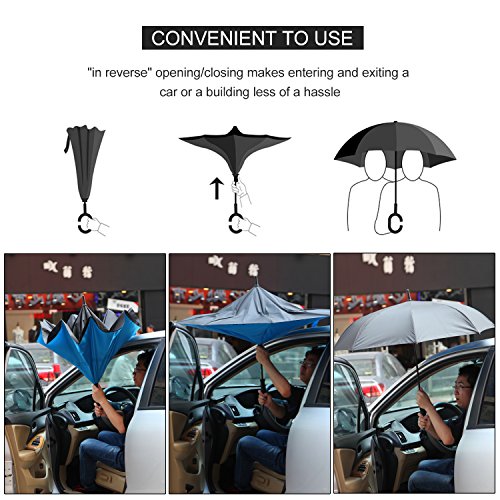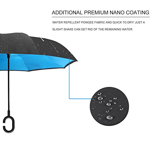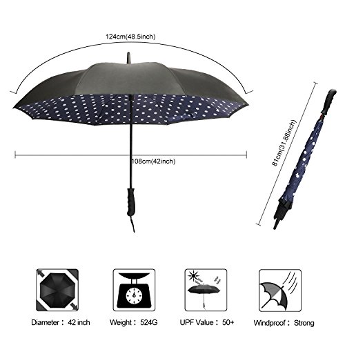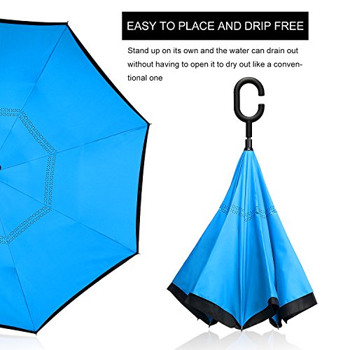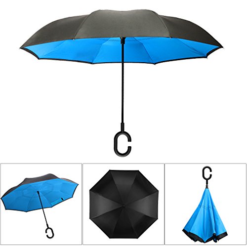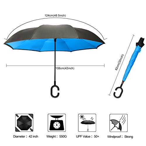 -. Title : IDAODAN Inverted Travel Umbrella Reverse Folding Umbrellas for Car, Double Layer Windproof UV Protection Water Repellent, 42" wide