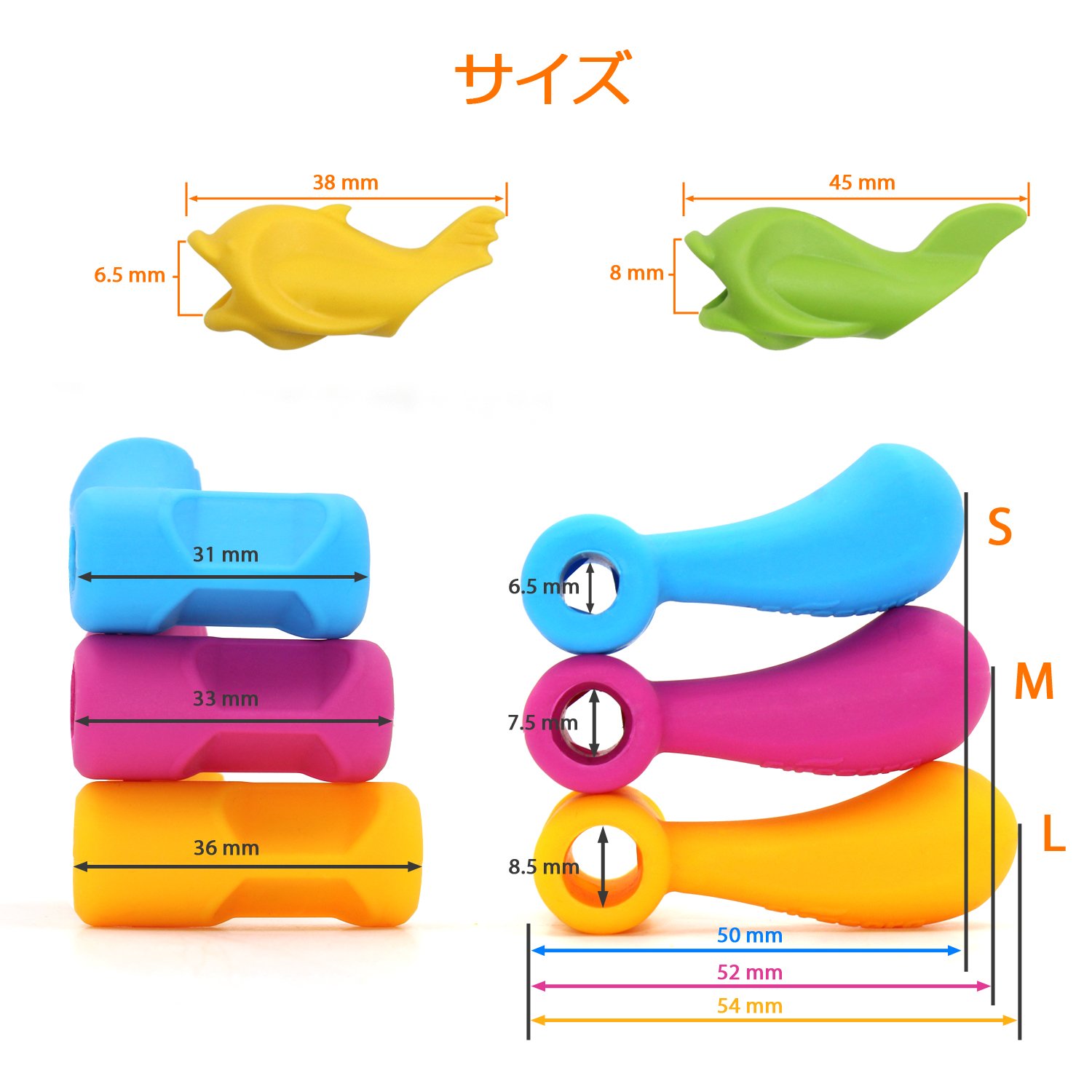 Dolphin type Michitaka-kun: The larger size becomes a pen with a diameter of 8 - 9 mm, the smaller size becomes a pencil or pen with a diameter of 6.5 - 7.5 mm.