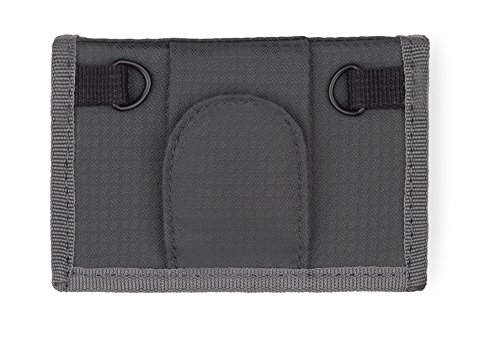 Slim pouch to securely carry 2 DSLR batteriesRear velcro loop easily attaches to belt, shoulder strap or backpack harness straps for quick access to batteries at all times Neoprene pockets stretch to accommodate popular battery sizesRear D-rings can be used to attach optional security cord, or a lanyard to hang batteries inside a jacket in cold weatherExterior of water-repellant shadow ripstop nylon