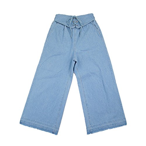 -. Title : 編み上げベルト風デニムワイドパンツ(p260289) (M, ブリーチ) [並行輸入品]