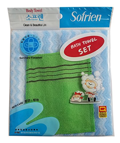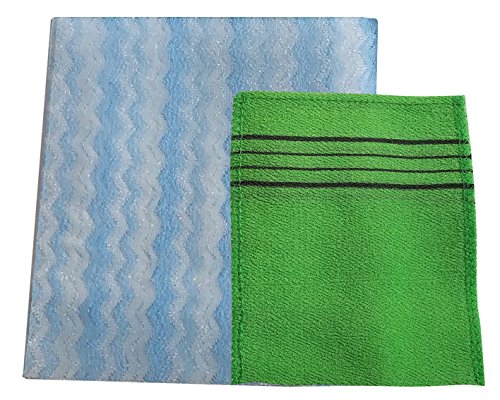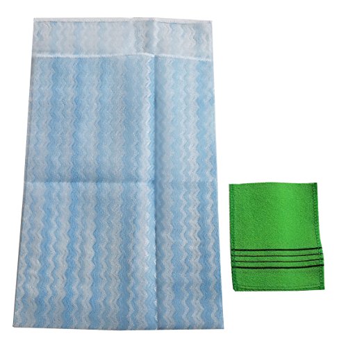 Nylon Korean Beauty Skin Bath Wash Cloth/Towel & Viscos Exfoliating Bath towel Set (Blue)