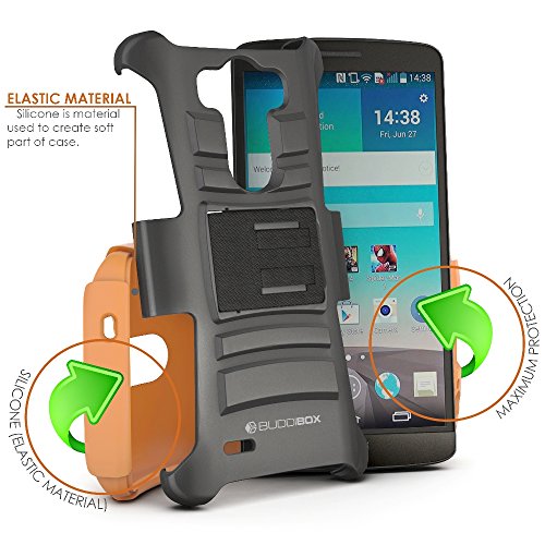 The BUDDIBOX impact armocaseseries holster combo case offers a soft shock-absorbing silicone inner sleeve + impact-resistant hard polycarbonate shell back cover providing the maximum protection throughout your busy day. It enables you to keep your phone in a like new condition while preserving its looks and features.this holster is not only durable, long lasting, but also equips the cell phone with stylish looks.