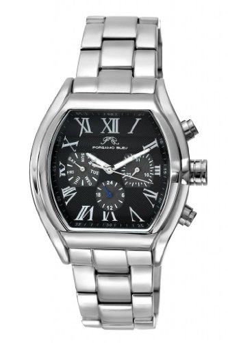 Porsamo Bleu Bruno Men's watch with stainless steel case and bracelet, multi-layer textured dial with 3 subdials; Silver tone & black