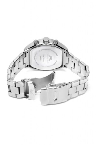 42 mm x 50 mm case size, 12 mm case thickness; Highest quality stainless steel case and bracelet; Multi layer, textured dial with big Roman numerals