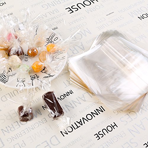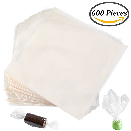 Coobey 600 Pieces Candy Wrappers Non-stick Cellophane Caramel Chocolate Natural Wrappers, 5 Inch by 5 Inch