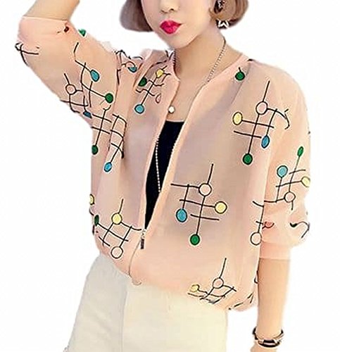 -. Title : (プチハピ)PuchiHapi 薄手 ノーカラージャケット 長袖 ジップアップ レトロ 柄 刺繍 春 夏 パステル ピンク レディース