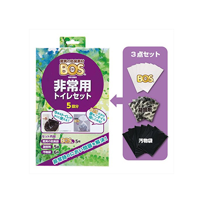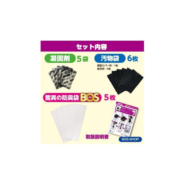 원본상품명: 驚異の防臭袋 BOS (ボス) 非常用 トイレ セット【凝固?、汚物袋、BOSの3点セット ※防臭袋BOSのセットはこのシリ?ズだけ!】 (5回分)
