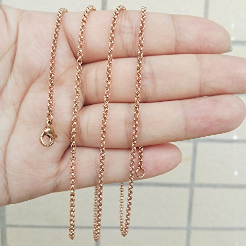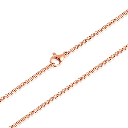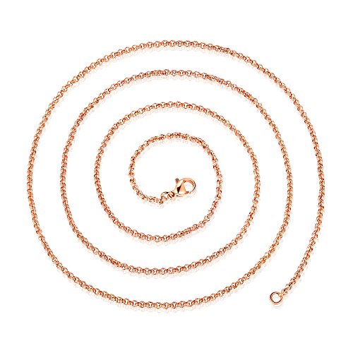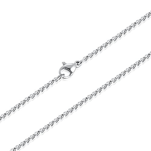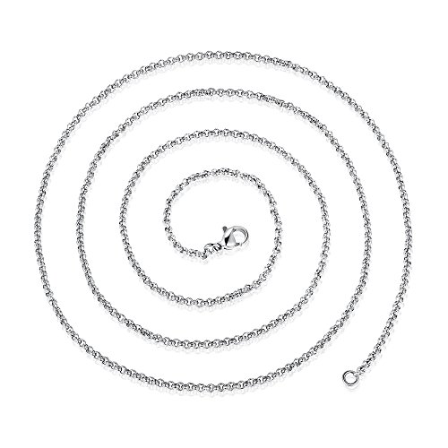 -. Feature : Material: Made of high quality Stainless Steel, you can wear 24/7, wear it in the shower, wear beneath your cloth or outside, it will not tanish. Of course safely skin contact. / Size: 2mm wide. it's dainty but strong chain. Multiple length choices, satisfy various needs, choose the most suitable one for yourself. / Suitable for wear the classic chain alone or add a pendant of your choice. It makes you look great with or without a pendant. / Well Made: Solidly construsted, polished smooth on surface.doesn't catch on clothes. will rduce the risk of scratch your skin . / Classic stylish rolo chain, both men and women can wear it. with cloth gift bag, good gift ideal for your friends and your family.