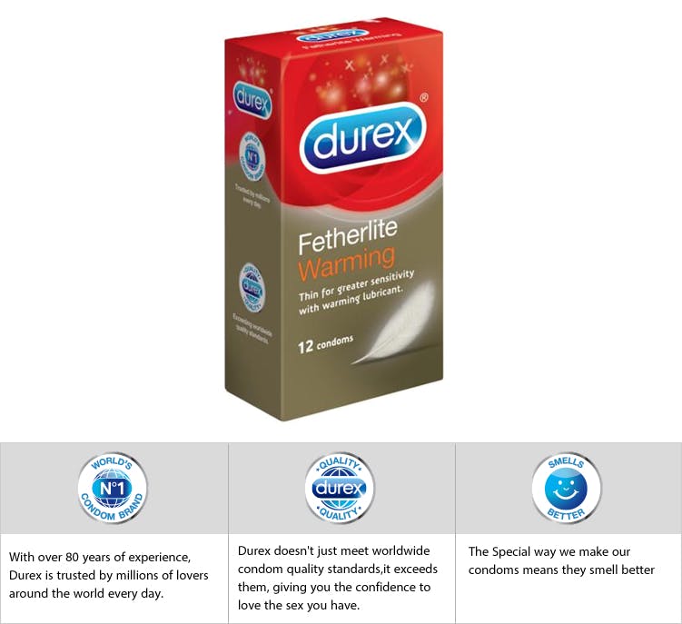 The special way we make Durex Fetherlite Warming means they smell better so there are no unpleasant distractions, you can just relax and enjoy.