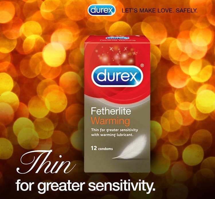 Try Durex Fetherlite Warming condoms, that while still providing the same high level of reassurance and protection, they're shaped to be easier to put on and provide a sleek fit and feeling. Durex Fetherlite Warming condoms are added with warming pleasure gels to provide warming sensation during sex.