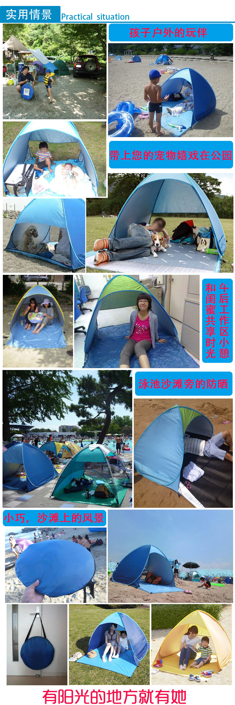 - UV Protection: Special silver coated fabric around the full coverage to ensure that the coverage area of Anti-UV effects.