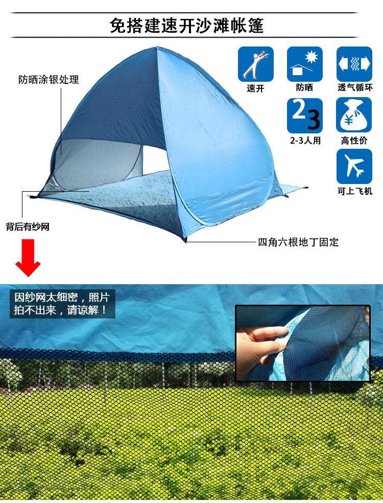 Automatic Pop Up Instant Portable Outdoors Quick Cabana Beach Tent Sun Shelter