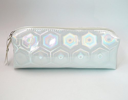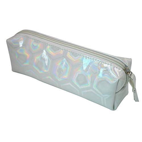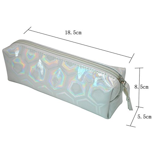 Monique Holographic Pen Pencil Case holder Stationery Pouch Coins Purse Cosmetic Bag White