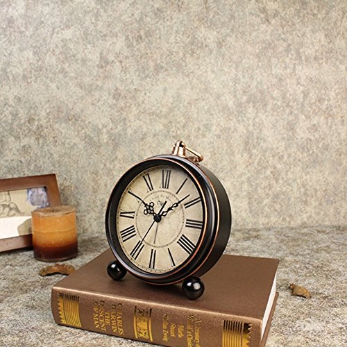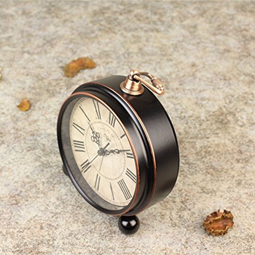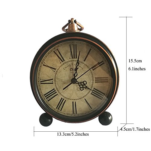 Specifications: Type: Retro Desk Clock Function: Alarm Movement: Smooth Sweeping Quartz Powered by: 1x AA battery (Not included) Product Dimensions: 13.3cm x 15cm x 4.5cm