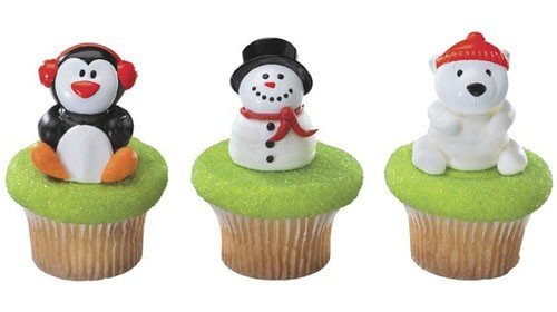 Product Description Pack of 12 holiday friends cupcake rings. Assorted penguin, polar bear, and snowmen heads. Plastic. Note: these are the heads only, bodies in photo are made of icing. 0