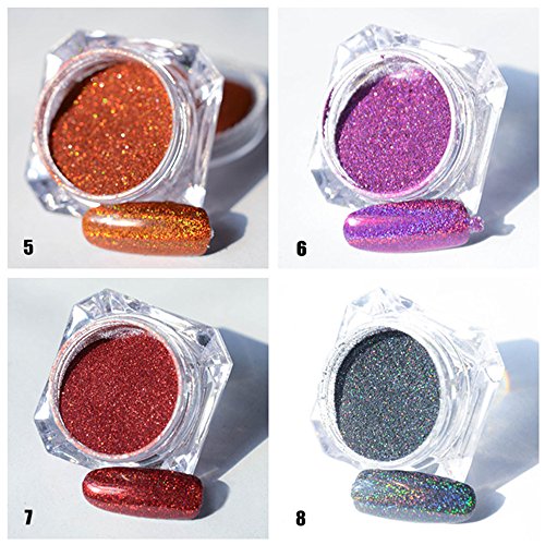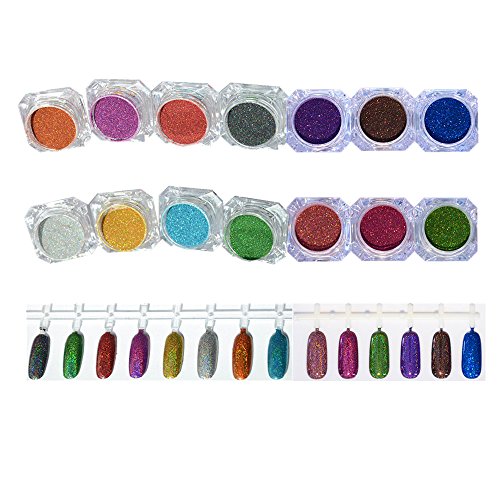 Studio : NICOLE DIARY Publisher : NICOLE DIARY Binding : Misc. Product Description Package Contents: 14 boxes Holographic Laser Powder Material: Powder Weight: Approx. 1g Color: As the pictures show Recommended to be used over gel topcoat and sealed with gel top coat. Best used with No Wipe Gel Top Coat Usage: 1.Apply base color (optional). 2.Apply a layer of special top gel, or other gel top coat (non-wipe recommended but not required). 3.Use a sponge tipped eye-shadow applicator, or a silicone brush to buff a thin layer of pigment onto nail surface. 4.Seal with gel top coat. NICOLE DIARY will meet your need. And support prefect service for you. If you have any questions, the email sent to us, we will answer for you in 24 hours and try our best to serve you. 0