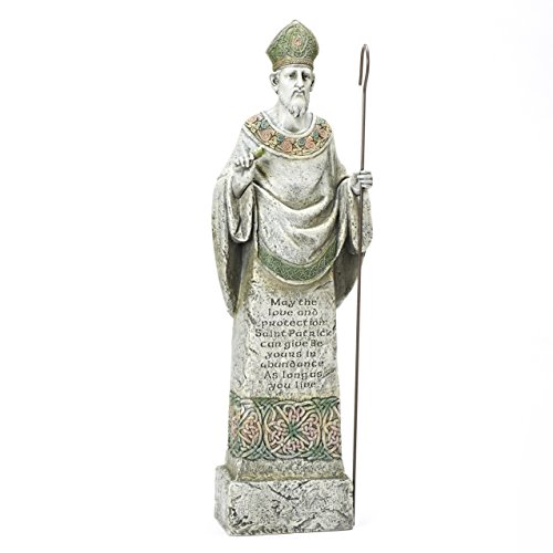 Joseph's Studio Standing St. Patrick Garden Statue with Verse Inscribed on The Front, 26.5-Inch, Made of Resin Stone