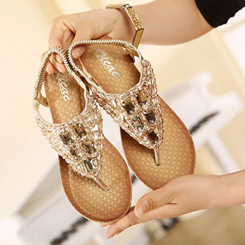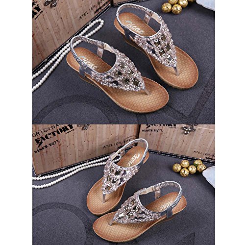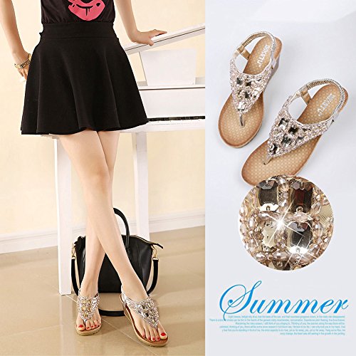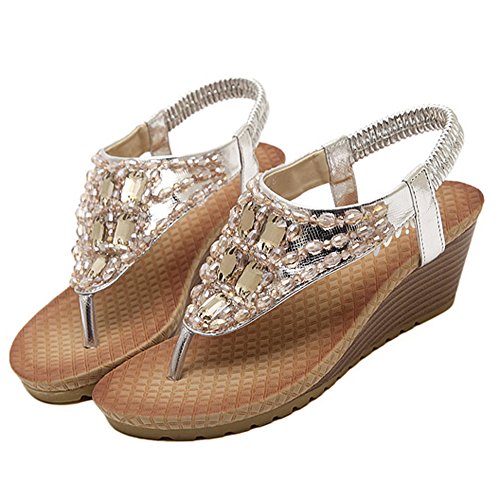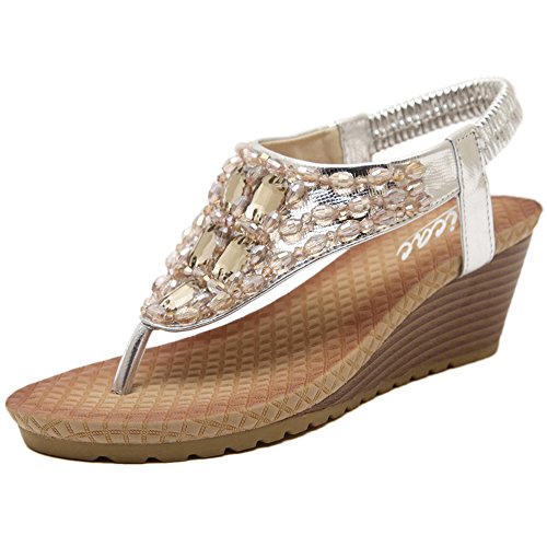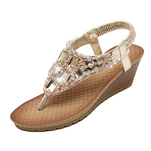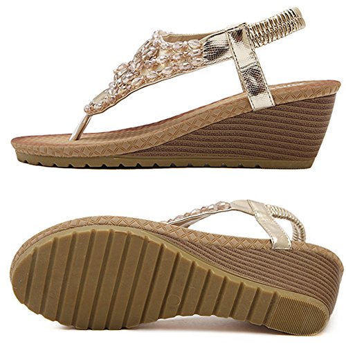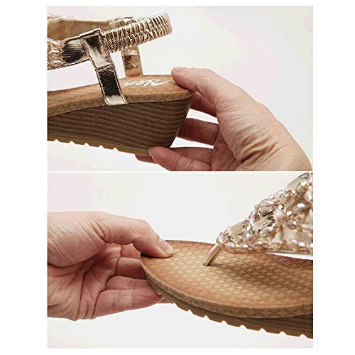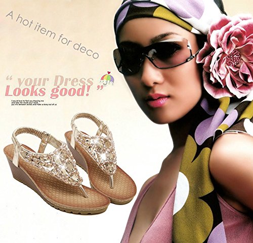 Binding : Apparel Product Description Zicac Women's Rhinestone Bead String Thong Sandals Wedges Sandals Heels Upper material: synthetic PU Sole material: raw rubber Heel height(wedge): about 5.5 cm (2.2 ") Platform: about 1.2 cm (0.47 ") Forefoot width(max):8 cm Fashion element: rhinestone,bead string Color: golden, silver, Perfect for summer, vacation, leisure, beach Size: 37,38,39,40, (Asia) 37:US5 38:US6 39:US7 40:US8 Package: 1x Sandals Note: 1. Color of the real item may be slightly different from the pictures shown on website caused by many factors such as brightness of your monitor and light brightness. 2. A slight measurement deviation within 1-3 cm is allowed; 0 |