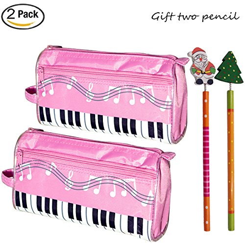 Sound harbor Notes Pen Bag & Music Theme Pen bag Pencil Case & Cosmetic bag Oxford Cloth MG-29 (2 Pack Pink)