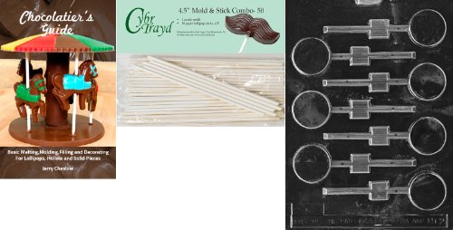 Cybrtrayd 'Small Round Lolly' Miscellaneous Chocolate Candy Mold with 50 4.5-Inch Lollipop Sticks and Chocolatier's Guide