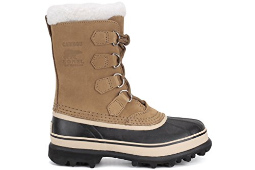 FEATURES of the Sorel Women's Caribou Boot Upper: Waterproof nubuck leather upper. Seam sealed waterproof construction Insulation: Removable 9 mm washable recycled felt inner boot with Sherpa Pile snow cuff Midsole: 2.5 mm bonded felt frost plug Outsole: Handcrafted waterproof vulcanized rubber shell with Sorel aero-trac non loading outsoleFeature