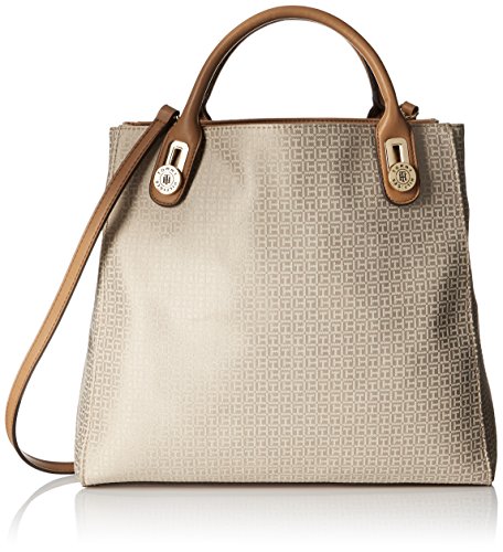 Tommy Hilfiger Tote Bag for Women Elaine Jacquard, Khaki Tonal