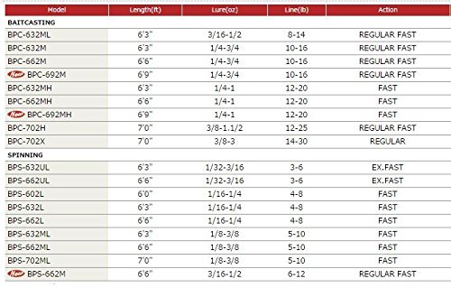 Joint:2 Length:6 ' 3 " Line (lb): 3-6 Lure (oz): 1 / 32-3 / 16 Action:EX. F 0